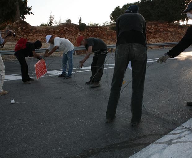 | View Original: | Activists block road to Karmei Tzur with barbed wire.jpg (800x661) | |||