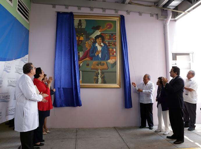 Keywords: room indoor El Presidente Salvador Sánchez Cerén devela una pintura en homenaje a la Dra. María Isabel Rodríguez. El Presidente Salvador Sánchez Cerén devela una pintura en homenaje a la Dra. María Isabel Rodríguez.
