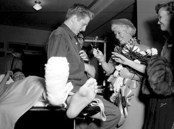 | Keywords: Actress Penny Singleton, 1954.JPEG Actress Penny Singleton signs autographs for patients at Fitzsimons General Hospital http //www defenseimagery mil; http //www defenseimagery mil/imagery html guid ad0ac043a00956990019b380d5699632125a0369 VIRIN HA-SN-99-00407 1954 author PD-USGov Penny Singleton |