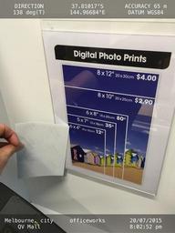 I am a frequent shopper at Officeworks. Imagine that you are a customer looking at the photo enclosed. The information on the sign does not relate to the actual photo size. Do you not think this is misleading? I know it is difficult to change the sign (photo enclosed) due to politically correct reasons.