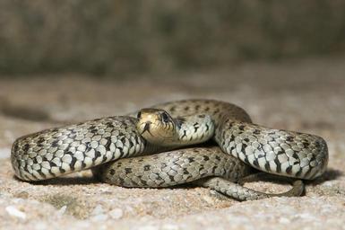 | Keywords: AD2009Aug07 Natrix natrix 08.jpg European Grass Snake Natrix natrix sometimes called the Ringed Snake or Water Snake is a non-venomous snake It is often found near water and feeds almost exclusively on amphibians The specimen in the picture is an adult female with a length of approximately one metre Yellow skin tones are due to ambient light Under neutral light the specimen is mainly grey/white Natrix natrix femelle adulte lovée sur elle même Ce spécimen a une longueur d'un mètre environ La couleur jaune due à la lumière ambiante Sous lumière neutre l'animal est gris-blanc La couleuvre à collier est un serpent non venimeux d'Europe On la trouve souvent près de l'eau et elle se nourrit presque exclusivement de batraciens Own Bernie 2009-08-07 100 px 100 px 100 px 100 px 100 px 100 px 100 px 47 523491592073235 12 300310134887695 Natrix natrix |