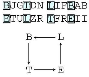 Keywords: AD-cycle.png AD-cycle svg A 4-cycle formed from the first and fourth letters of four Enigma message indicators as used before 1938 by the German military Matt Crypto 14 21 13 December 2005 UTC Cryptography diagrams