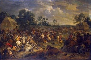 | Keywords: Adam Frans van der Meulen - Battle - WGA15108.jpg Artwork Creator Adam Frans van der Meulen 1657 Oil on canvas size cm 121 172 Institution Hermitage Museum object history credit line accession number WGA link 15108 http //www wga hu/art/m/meulen/battle1 jpg http //www wga hu/html/m/meulen/battle1 html PD-old-100 painting historical Flemish 1651-1700 Paintings by Adam Frans van der Meulen Flemish paintings in the Hermitage Genre paintings in the Hermitage 1657 paintings WGA form painting WGA type historical WGA School Flemish WGA time period 1651-1700 17th-century oil on canvas paintings in Russia 17th-century paintings of battles 1650s paintings in Russia 17th-century paintings of cavalry in battle 1650s paintings from France 17th-century paintings in the Hermitage |