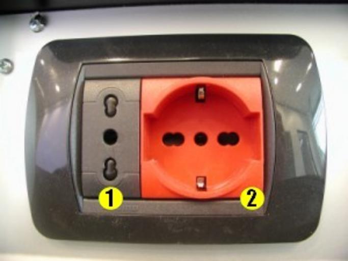 Keywords: Adapted schuko.jpg en An Italian adapted Schuko socket number 2 named P 40 BTicino Living International own photo Edo leitner 2008-08-04 P 40 sockets CEI 23-50 sockets BTicino