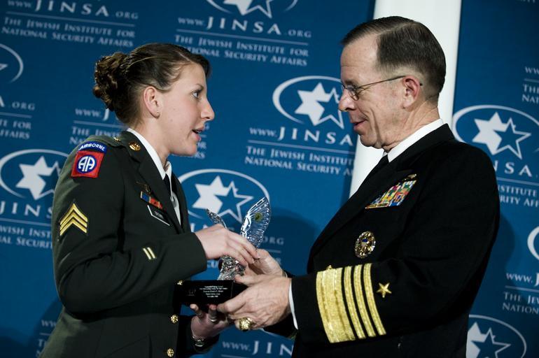 Keywords: Adm. Mike Mullen presents U.S. Army Sgt. Monica L. Brown with the 2008 Jewish Institute for National Security Affairs Grateful Nation Award 01.JPG en Chairman of the Joint Chiefs Navy Adm Mike Mullen presents U S Army Sgt Monica L Brown with the 2008 Jewish Institute for National Security Affairs Grateful Nation Award during a ceremony in Crystal City Va Dec 8 2008 The award is presented to six individuals that have distinguished themselves through superior conduct in the war on terror http //dodimagery afis osd mil/imagery html guid f3d84825465e93d4bfe574125640d0c17c2b93c0 defenseimagery mil 081208-N-0696M-356 DoD photo by Mass Communication Specialist 1st Class Chad J McNeeley U S Navy/Released 2008-12-8 personality rights PD-USGov-Military-Navy 2008 in Virginia 2008 photographs 8 December Crystal City Arlington Virginia December 2008 in the United States Handshakes involving the military Michael G Mullen in 2008 Monica Lin Brown People wearing military decorations of Germany Bundeswehr Military people on duty |