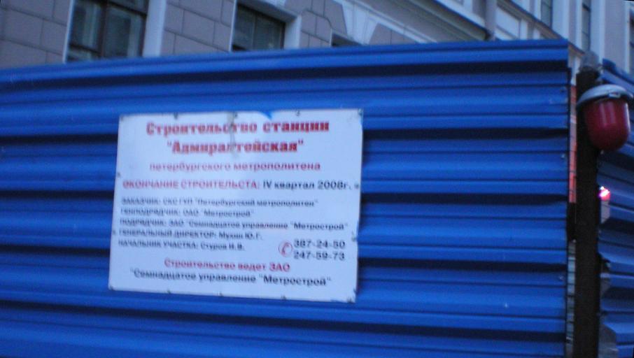 | Keywords: Admiralteyskaya metrostation - bilding board.jpg Табличка ст оительства станции мет о «Адми алтейская» Transferred from http //ru wikipedia org ru wikipedia<br/> Original text собственная абота Sep 2007<br/> 2007 09 13 original upload date Анд ей Original uploader was AndreyA at http //ru wikipedia org ru wikipedia Released into the public domain by the author ru wikipedia AndreyA original upload log page ru wikipedia Admiralteyskaya_metrostation_-_bilding_board jpg 2007-09-13 20 20 AndreyA 2924×1652× 961139 bytes <nowiki> Изоб ажение Описание Табличка ст оительства станции мет о «Адми алтейская» Авто Участн�</nowiki> Admiralteyskaya metrostation |