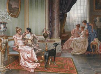 | Keywords: Admiration, by Vittorio Reggianini.jpg en Admiration oil on canvas 63 5 x 85 7 cm signed b r VReggianini < 1938 http //www sothebys com/fr/auctions/ecatalogue/2011/19th-century-paintings-n08738/lot 61 html Sotheby's Creator Vittorio Reggianini other versions Custom license marker 2016 10 30 PD-old-70 Vittorio Reggianini |