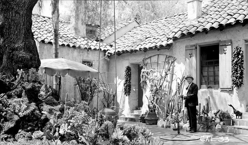 | Keywords: Adobe Flores (South Pasadena, CA).jpg 73000404 Adobe Flores 1804 Foothill Boulevard South Pasadena Los Angeles County California Detail of patio toward southwest Building/structure dates 1839 initial construction; subsequent work 1843 and 1919 National Register of Historic Places in Los Angeles County California From the HABS ”Historic American Buildings Survey images of California Historic American Buildings Survey; Library of Congress HABS CAL 19-PASAS 1-1 LOC-image hhh ca0299 1936-06 Henry F Withey photographer CA-33-1 en Eulalia PĂ©rez de GuillĂ©n MarinĂ© Flores Adobe - South Pasadena Flores Adobe South Pasadena Courtyards in California Patios in California Porches in California Roofs in California Tiled roofs in the United States Gardens in Los Angeles Black and white photographs of Los Angeles Black and white photographs of residential buildings Black and white photographs of gardens Historic American Buildings Survey in Los Angeles California |