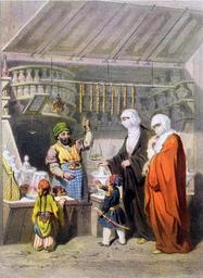 Keywords: Adolphe Jean-Baptiste Bayot00.jpg Stallholder Selling Spiced Delicacies at the Bazaar http //www allposters com/ Lithography by Creator Adolphe Jean-Baptiste Bayot PD-old-100 Bazaars Adolphe Jean-Baptiste Bayot