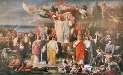 | Keywords: Adolphe Yvon - Genius of America 1.jpg Genius of America oil canvas 29 5 x 18 feet 8 99 m x 5 49 m Albany NY New York State Education Building this monumental version is the second version the smaller one in the St Louis Art Museum is the original http //gigapan com/gigapans/121412 The Genius of America - Chancellors Hall Mural New York State Education Building by nysmuseum ~ 1870 creator Adolphe Yvon Other versions <gallery> Adolphe Yvon - Genius of America jpg </gallery> PD-old-100 Adolphe Yvon 1870s oil on canvas paintings in the United States Americas in art Music-making angels 19th-century paintings of angels with humans People with flags in art New York State Education Department Building interior African Americans in 19th-century art Yvon Sculptures of George Washington Paintings of George Washington |
