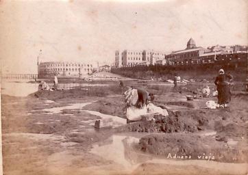 | Keywords: Aduana Vieja (1888).jpg es Vista de la ribera de Buenos Aires con mujeres lavando la ropa en pozos hechos en la tosca del Río de la Plata Puerto Madero no existía al fondo se ven la Casa Rosada recién construida y la Aduana de Taylor y sobre la derecha aparece el murallón que contenía a la actual Avenida Leandro N Alem 1888 Archivo General de la Nación Argentina author Custom license marker 2012 04 21 PD-AR-Anonymous PD-anon-1923 Uploaded with UploadWizard Buenos Aires in the 1880s San Nicolás Buenos Aires Casa Rosada Buenos Aires Avenida Leandro N Alem Buenos Aires Aduana Taylor Washerwomen Images from Archivo General de la Nación Argentina |