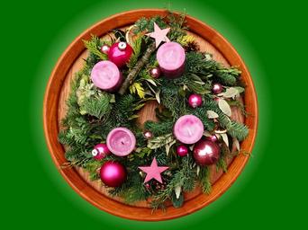 Keywords: advent wreath advent christmas candle meditative pink holly arrangement christmas bauble wax candle deco romantic contemplative festive decorations december vorweihnachtlich