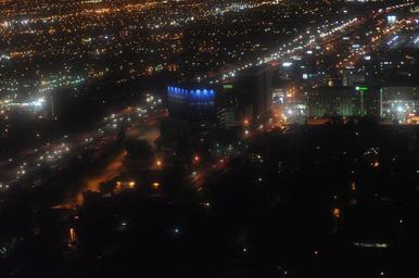 | Keywords: freeway highway motorway night aerial parking hotel inn Aerial photo of cars on I-405. The building on right with the green lights is a Holiday Inn, and the building with the blue lights reading "UNITED" is a hexagonal office building next to a LAX airport parking deck. Near Los Angeles International Airport, taken at night from a passenger plane. CC0 waiver: To the extent possible under law, I waive all copyright and related or neighboring rights to this work. Aerial photo of cars on I-405. The building on right with the green lights is a Holiday Inn, and the building with the blue lights reading "UNITED" is a hexagonal office building next to a LAX airport parking deck. Near Los Angeles International Airport, taken at night from a passenger plane. CC0 waiver: To the extent possible under law, I waive all copyright and related or neighboring rights to this work. |