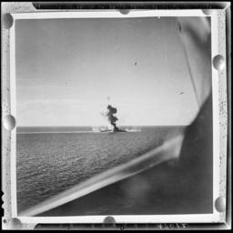 | Keywords: Aerial of US invasion of Engebi Island in Eniwetok atoll. Flares (left) signal fleet to lift bombardment so that... - NARA - 520614.jpg A Japanese Mogami-class cruiser under attack by U S Navy aircraft of Carrier Air Group 7 CVG-7 following the Battle of Leyte Gulf 26 October 1944 A Curtiss SB2C-3 Helldiver of Bombing Squadron 7 VB-7 is visible in the upper right of the photograph The cruiser is most probably Kumano which had her bow blown off by a torpedo launched from the destroyer USS Johnston DD-557 during the Battle off Samar on 25 October She was attacked by aircraft of CVG-7 from USS Hancock CV-19 while retreating through the Sibuyan Sea and was struck by three 500 lb 227 kg bombs She survived and sailed to Manila Bay for repairs on her bow and all four boilers On 6 November she was struck by two torpedoes fired from U S submarines and finally sunk by aircraft from USS Ticonderoga CV-14 on 25 November 1944 520614 Local identifier 80-G-47012 Department of Defense Department of the Navy Naval Photographic Center 09/18/1947 - Miller Wayne Photographer 2083745 <br /> Still Picture Records Section Special Media Archives Services Division NWCS-S National Archives at College Park 8601 Adelphi Road College Park MD 20740-6001 1944-10-26 Record group Record Group 80 General Records of the Department of the Navy 1804 - 1983 Record group ARC 409 General Photographic File of the Department of Navy compiled 1943 - 1958 documenting the period 1900 - 1958 Series ARC 520587 File unit File unit ARC Variant control numbers NAIL Control Number NWDNS-80-G-47012 Other versions <gallery> File Aerial_of_US_invasion_of_Engebi_Island_in_Eniwetok_atoll _Flares_ left _signal_fleet_to_lift_bombardment_so_that _-_NARA_-_520614 tif tif File Aerial_of_US_invasion_of_Engebi_Island_in_Eniwetok_atoll _Flares_ left _signal_fleet_to_lift_bombardment_so_that _-_NARA_-_520614 jpg jpg File Japanese cruiser under attack 26 October 1944 jpg jpg </gallery> NARA-cooperation PD-USGov Black and white photographs of World War II Kumano ship 1937 Battle of Leyte Gulf Curtiss SB2C Helldiver |