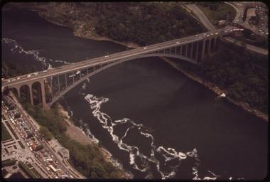 | Keywords: AERIAL VIEW OF NIAGARA RIVER BELOW THE FALLS, SHOWING RAINBOW BRIDGE WHICH JOINS THE AMERICAN AND CANADIAN SIDES.... - NARA - 549469.jpg Scope and content General notes 549469 Local identifier 412-DA-6984 Environmental Protection Agency 12/02/1970 - NARA-Author Burns George 1896-1996 Photographer 1340567 <br /> Niagara Falls Niagara New York state United States North and Central America inhabited place 4202458 43 083 -79 05 <br /> Still Picture Records Section Special Media Archives Services Division NWCS-S National Archives at College Park 8601 Adelphi Road College Park MD 20740-6001 05/1973 Record group Record Group 412 Records of the Environmental Protection Agency 1944 - 2006 Record group ARC 708 DOCUMERICA The Environmental Protection Agency's Program to Photographically Document Subjects of Environmental Concern compiled 1972 - 1977 Series ARC 542493 File unit File unit ARC Variant control numbers Agency-Assigned Identifier 117/24/006984<br /> NAIL Control Number NWDNS-412-DA-6984 Other versions <gallery> File AERIAL_VIEW_OF_NIAGARA_RIVER_BELOW_THE_FALLS _SHOWING_RAINBOW_BRIDGE_WHICH_JOINS_THE_AMERICAN_AND_CANADIAN_SIDES _-_NARA_-_549469 tif tif File AERIAL_VIEW_OF_NIAGARA_RIVER_BELOW_THE_FALLS _SHOWING_RAINBOW_BRIDGE_WHICH_JOINS_THE_AMERICAN_AND_CANADIAN_SIDES _-_NARA_-_549469 jpg jpg </gallery> NARA-cooperation PD-USGov Rainbow Bridge Niagara Falls 1973 in Ontario 1973 in New York |
