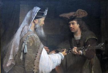 | Keywords: Aert de Gelder - Ahimelech Giving the Sword of Goliath to David - WGA8522.jpg s 1680 Oil on canvas size cm 90 132 Institution Getty Center object history credit line accession number own Ahimelech Giving the Sword of Goliath to David jpg PD-old-100 painting religious Dutch 1651-1700 WGA form painting WGA type religious WGA School Dutch WGA time period 1651-1700 Aert de Gelder Dutch paintings in the Getty Center Aert de Gelder Achimelech 1680s oil on canvas paintings in the United States 17th-century oil paintings of standing men at half length Gelder 17th-century paintings of David Gelder 17th-century religious paintings in the United States Paintings of men with swords People reaching objects |