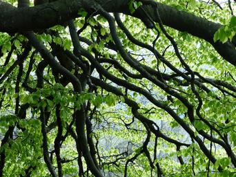 Keywords: aesthetic branches beech tree canopy green shades of green leaves haunting gnarled old powerful fagus sylvatica fagus deciduous tree