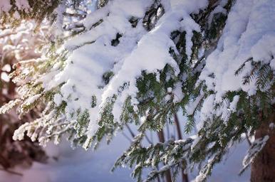 Keywords: aesthetic branches snowy snow winter sunlight conifer conifer branches nature out close