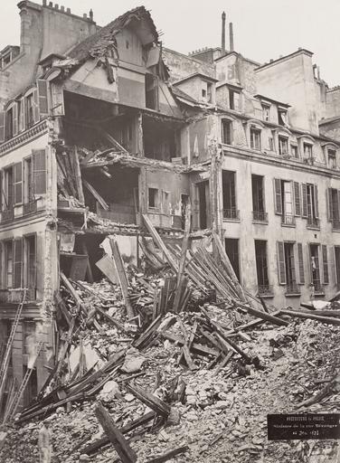 | Keywords: Affaire d'Accident - Collapsed building 4.jpg Photograph Creator Hippolyte-Auguste Collard en City Police Préfecture Paris en Affaire d'Accident View of collapsed buildings showing piles of bricks cut stone and shattered timber open side of adjoining apartments visible elevated street view showing pile of rubble between the walls of adjoining buildings and exposed rooms of one building ladder up against wall Labels on original images lower right reads Préfecture de Police / Sinistre de la rue Béranger / 14 Mai 1878 depicted people depicted place between 1876 1880 albumen silver 66 5 x 57 cm accession number H87 208/10 SLVIC-digitalimage 273521 H87 208/10 Album with leather covered cardboard covers 148 cardboard leaves holding 69 albumen silver print photographs on one side of leaf only Individual titles and official photographer stamped below image Title embossed on front cover with seal of the City of Paris in gilt ink ; title also on spine Label inside front cover reads Presented to the Public Library c Victoria on the eighth day of April 1881 by the Government of France Hand inscribed note on first page of album upper left Presented April 8th 1881 illegible Photographs various sizes 38 x 27 cm and smaller <br> Album was designed to show the use of photography in the solving of crimes and disasters Gift of the French Government possibly following the International Exhibition of 1880 <br> Official photographer's stamp on each page lower left some images dated 1876 and 1880 One photographer identified Hippolyte-Auguste Collard Institution State Library of Victoria object history exhibition history credit line Gift; Government of France; 1881 Information field Author Préfecture de police de Paris Service Photographique PD-100 Ruins in Paris Ville de Paris Préfecture de police Images of Paris from the State Library of Victoria |