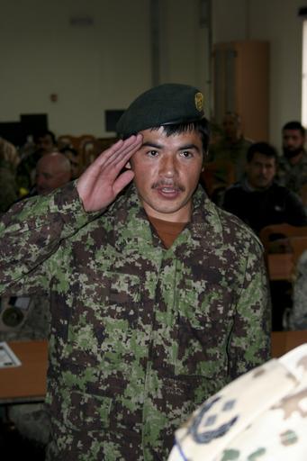 | Keywords: Afghan Forces graduate from IED-Defeat-EOD training 111215-N-XY282-126.jpg en An Afghan National Army soldier salutes his leadership during a graduation ceremony held at the Afghan National Army Engineer School near Camp Spann Dec 15 Fifteen Afghan servicemen graduated in the ceremony and can now wear the Explosive Ordnance Disposal patch and badge after completing 22 weeks of intensive EOD and Improvised Explosive Device Defeat training The Engineer School is the only one in Afghanistan that teaches the fundamentals of EOD and IEDD to Afghan National Security Forces International Security Assistance Force Regional Command North supports Afghan National Security Forces in close coordination and collaboration in providing security and disrupting the insurgents' activities in order to protect the population secure the highways and support the Afghan Border Patrol operations in the border areas and crossing points in order to set the conditions for economic social and cultural development in key terrain districts 2011-12-15 Petty Officer 1st Class Richard Wolff https //www dvidshub net/image/501585 111215-N-XY282-126 2011-12-19 08 37 MAZAR-E-SHARIF AF PD-USGov-Military-Navy Soldiers of the Afghan National Army Images from DoD uploaded by Fæ |
