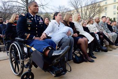 | Keywords: Afghan Veteran and Family Members Are Honored by Defense Secretary Carter, Afghan President Ghani During Honor Cordon at Pentagon.jpg en Army Captain Jeremy Haynes who nearly died in Afghanistan; his wife Chelsea and their new child Jordan; Susan Myers Greene widow of General Harold Greene killed in Afghanistan; and Mary Ann and Reese Larson whose husband and father Lonn respectively is currently deployed to Afghanistan listen on March 23 2015 as U S Defense Secretary Ash Carter and Afghan President Ashraf Ghani thanked U S government leaders military members and citizens for their support and sacrifices on behalf of the country since 2001 State Department photo/ Public Domain 2015-03-23 07 59 58 http //www flickr com/photos/9364837 N06/16907460822/ U S Department of State other versions 38 871322 -77 055916 PD-USGov PD-USGov Relations of Afghanistan and the United States Uploaded with UploadWizard |