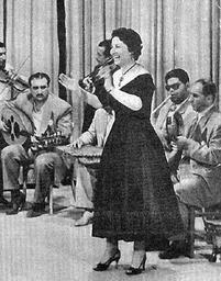 | Keywords: Afifa-Iskandar.jpg الفنانة العراقية عفيفة اسكندر في احدى حفلاتها في فترة الخمسينيات على مسرح قاعة الملك فيصل الثاني قاعة الشعب حالياً يصاحبها من اليسار إلى اليمين جميل بشير كمان ، منير بشير عود ، كريم بدر كمان ، سالم حسين قانون ، خضر إلياس ناي وحسين عبد الله إيقاع Afifa Iskandar Iraqi singer the image was taken between 1950 - 1959 in Baghdad http //www bakhdida net/afifa jpg 1950 - 1959 author PD-Iraq Women of Iraq Births in Mosul People of Baghdad Baghdad in the 1950s | ||||