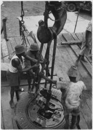 | Keywords: Africa. Gabon, French Equatorial Africa. Native workers assemble drill pipes, the rotary table comes from Beaumont... - NARA - 541653.tif Scope and content General notes 541653 Local identifier 286-ME-1 22 U S International Development Cooperation Agency Agency for International Development 10/01/1979 - ca 1998 Most Recent <br /> Department of State International Cooperation Administration 06/30/1955 - 11/1961 Predecessor <br /> Foreign Operations Administration 08/01/1953 - 06/30/1955 Predecessor <br /> Economic Cooperation Administration 1948 - 12/30/1951 Predecessor <br /> Mutual Security Agency 1951 - 08/01/1953 Predecessor NARA-Author Rodger George Photographer 2236828 <br /> Still Picture Records Section Special Media Archives Services Division NWCS-S National Archives at College Park 8601 Adelphi Road College Park MD 20740-6001 circa 1948 1955 Record group Record Group 286 Records of the Agency for International Development 1948 - 2003 Record group ARC 608 Photographs of Marshall Plan Activities in Europe and Africa compiled ca 1948 - ca 1989 documenting the period 1945 - ca 1954 Series ARC 541631 File unit File unit ARC Variant control numbers NAIL Control Number NWDNS-286-ME-1 22 yes Other versions NARA-cooperation PD-USGov Oil drilling rigs Hooks Men at work People of Cameroon Marshall Plan George Rodger United States Agency for International Development Economy of Gabon Gabon in the 1950s |