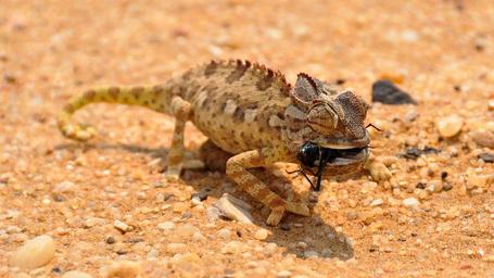 Keywords: africa namibia landscape namib desert desert dunes sand dunes dry sand sandy heiss nature chameleon close reptile eat beetle