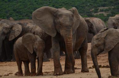 Keywords: africa safari elephant wild animal pachyderm african bush elephant flock young animals baby elephant big five wildlife photography