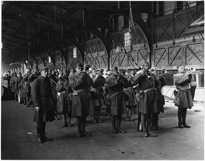 | Keywords: (African American) Band of the 814th Infantry Leaving the Celtic After Her Arrival. Lieutenant Maxo . . . - NARA - 533491.tif Scope and content The full caption for this item is as follows African American Band of the 814th Infantry Leaving the Celtic After Her Arrival Lieutenant Maxom and his African American band of the 814th Infantry African American troops who have seen hard fighting in France and just returned to this country aboard the Transport Celtic leaving the pier for camp General notes 533491 Local identifier 165-WW-127 7 War Department 1789 - 09/18/1947 NARA-Author Western Newspaper Union Photographer 556413 <br /> Still Picture Records Section Special Media Archives Services Division NWCS-S National Archives at College Park 8601 Adelphi Road College Park MD 20740-6001 1917 - ca 1919 Record group Record Group 165 Records of the War Department General and Special Staffs 1860 - 1952 Record group ARC 494 American Unofficial Collection of World War I Photographs compiled 1917 - 1918 Series ARC 533461 File unit File unit ARC Variant control numbers NAIL Control Number NWDNS-165-WW-127 7 yes Other versions NARA-cooperation PD-USGov World War I forces of the United States African-American military personnel Marching bands in the United States |