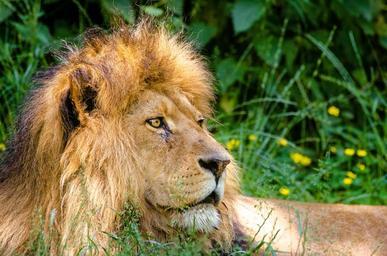 Keywords: african lion lion male mane lazy cat animal predator zoo africa jungle wild