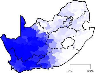 | Keywords: Afrikaans speakers proportion ZA.svg South Africa Afrikaans speakers proportion map svg Speakers of Afrikaans as a home language as a proportion of total population in South Africa Afrikaanse huistaalsprekers proporsioneel tot die hele Suid-Afrikaanse bevolking self-made based on Census 2001 data 2007-08-17 Adrian Frith Linguistic maps of the Afrikaans language Superseded linguistic maps of South Africa | ||||