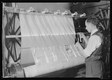 | Keywords: nara:arcid=518558 u.s. national archives usnationalarchives lewis hine lewishine 1937 paterson new jersey newjersey the great depression thegreatdepression blackandwhite monochrome photo border black and white Original Caption: Paterson, New Jersey - Textiles. After all the sections required for the warp have been wound on to the frame, the ends are ready to be wound from the frame onto the beam. The operator is shown tying the ends of the section on to the beam paper. The paper is used on beams having no flanges to keep the warp threads in position on the beam, March 1937 U.S. National Archives’ Local Identifier: 69-RP-319 Photographer: Hine, Lewis Subjects: The New Deal Tennessee Valley Authority Works Progress Administration Work Portraits The Great Depression Persistent URL: research.archives.gov/description/518558 Repository: Still Picture Records Section, Special Media Archives Services Division (NWCS-S), National Archives at College Park, 8601 Adelphi Road, College Park, MD, 20740-6001. For information about ordering reproductions of photographs held by the Still Picture Unit, visit: www.archives.gov/research/order/still-pictures.html Reproductions may be ordered via an independent vendor. NARA maintains a list of vendors at www.archives.gov/research/order/vendors-photos-maps-dc.html Access Restrictions: Unrestricted Use Restrictions: Unrestricted Original Caption: Paterson, New Jersey - Textiles. After all the sections required for the warp have been wound on to the frame, the ends are ready to be wound from the frame onto the beam. The operator is shown tying the ends of the section on to the beam paper. The paper is used on beams having no flanges to keep the warp threads in position on the beam, March 1937 U.S. National Archives’ Local Identifier: 69-RP-319 Photographer: Hine, Lewis Subjects: The New Deal Tennessee Valley Authority Works Progress Administration Work Portraits The Great Depression Persistent URL: research.archives.gov/description/518558 Repository: Still Picture Records Section, Special Media Archives Services Division (NWCS-S), National Archives at College Park, 8601 Adelphi Road, College Park, MD, 20740-6001. For information about ordering reproductions of photographs held by the Still Picture Unit, visit: www.archives.gov/research/order/still-pictures.html Reproductions may be ordered via an independent vendor. NARA maintains a list of vendors at www.archives.gov/research/order/vendors-photos-maps-dc.html Access Restrictions: Unrestricted Use Restrictions: Unrestricted |