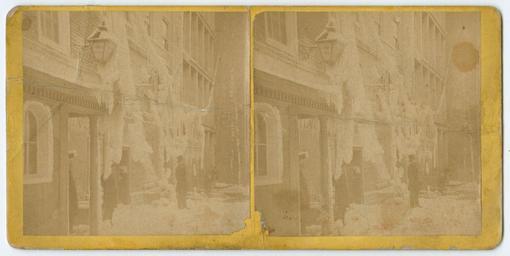 | Keywords: stereographs philadelphia streets chestnut street chestnutstreet jayne building jaynebuilding third street thirdstreet icicles fires photo border texture Winter view of the Jayne Building on Third and Chestnut Street, Philadelphia, 1872. Shows icicles hanging as if garland along the facade of the Jayne Building, after a fire. A man stands guard in front of the building. Accession number: P.2011.47.1834 Winter view of the Jayne Building on Third and Chestnut Street, Philadelphia, 1872. Shows icicles hanging as if garland along the facade of the Jayne Building, after a fire. A man stands guard in front of the building. Accession number: P.2011.47.1834 |