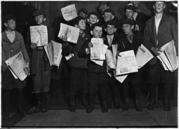 | Keywords: After midnight selling extras. There were many young boys selling very late these nights. Youngest boy in the group... - NARA - 523536.jpg Scope and content General notes 523536 Local identifier 102-LH-2938 Department of Commerce and Labor Children's Bureau 1912 - 1913 NARA-Author Hine Lewis Wickes 1874-1940 Photographer 1122914 <br /> Still Picture Records Section Special Media Archives Services Division NWCS-S National Archives at College Park 8601 Adelphi Road College Park MD 20740-6001 1912-04-17 Record group Record Group 102 Records of the Children's Bureau 1908 - 2003 Record group ARC 431 National Child Labor Committee Photographs taken by Lewis Hine compiled ca 1912 - ca 1912 documenting the period 1908 - 1912 Series ARC 523064 File unit File unit ARC Variant control numbers NAIL Control Number NWDNS-102-LH-2938 Other versions <gallery> File After_midnight_selling_extras _There_were_many_young_boys_selling_very_late_these_nights _Youngest_boy_in_the_group _-_NARA_-_523536 tif tif File After_midnight_selling_extras _There_were_many_young_boys_selling_very_late_these_nights _Youngest_boy_in_the_group _-_NARA_-_523536 jpg jpg </gallery> NARA-cooperation PD-USGov Child labor in the United States Black and white photographs of boys Black and white photographs of groups Boys at work April 1912 in Washington D C Washington Post people Newsboys |