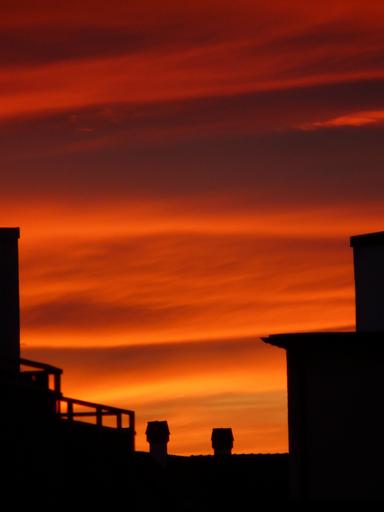 Keywords: afterglow sunset sky clouds fire glow burn home architecture silhouette building