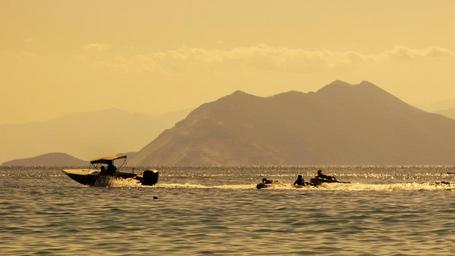 Keywords: afternoon sea sunset summer tourism boat water sport landscape silhouette shadows greece