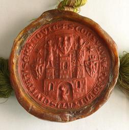 | Keywords: AGAD Pieczec miasta Krakowa (1425).png Artwork NN pl Pieczęć miasta Krakowa na sznurze rudo-zielonym odciśnięta w czerwonym wosku przy dokumencie z 1425 r Legenda + S CONSVLVM ET COMUNITATIS CIVITATIS CRACOVIE W polu pieczęci brama miejska o 3 basztach Nad środkową tarcza z orłem na bocznych św Wacław i św Stanisław Po bokach dwie tarcze z herbem kujawskim a nad nimi korony powyżej których jeszcze gwiazdy W dolnej bramie klęcząca postać w pozie modlitewnej 1425 pl pieczęć en seal Institution Archiwum Główne Akt Dawnych Wydanie drukiem M Gumowski Najstarsze pieczęcie miast polskich XIII i XIV wieku Toruń 1960 nr 212 s 121 tab XVII object history Zbiór Dokumentów Pergaminowych sygn 5024 AGAD partnership PD-old-100 Seals from Archiwum Główne Akt Dawnych History of Kraków Symbols of Kraków |