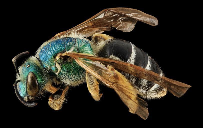| Keywords: bug bugs bee bees pollinator pollinators animal animals animalia arthropod arthropods arthropoda insect insects insecta hymenoptera aculeata anthophila apoidea halictidae halictid halictid bee halictidbee sweat bee sweatbee sweat bees sweatbees halictinae halictini agapostemon taxonomy:binomial=agapostemon coloradinus taxonomy:binomial=agapostemoncoloradinus metallic blue blue-green bluegreen agapostemon coloradinus agapostemoncoloradinus badlands national park badlandsnationalpark south dakota southdakota biml droege usgs zerene stacker zerenestacker stackshot usgsbiml black background photo border surreal A large bright green with blue overtones Agapostemon from Badlands National Park. One of several species present there and very similar to A. virescens and a bit tricky to tell apart. Photo by Wayne Boo with help from Ben Smith on upping the Photoshopping techniques. Canon Mark II 5D, Zerene Stacker, 65mm Canon MP-E 1-5X macro lens, Twin Macro Flash, F5.0, ISO 100, Shutter Speed 200, link to a .pdf of our set up is located in our profile. A large bright green with blue overtones Agapostemon from Badlands National Park. One of several species present there and very similar to A. virescens and a bit tricky to tell apart. Photo by Wayne Boo with help from Ben Smith on upping the Photoshopping techniques. Canon Mark II 5D, Zerene Stacker, 65mm Canon MP-E 1-5X macro lens, Twin Macro Flash, F5.0, ISO 100, Shutter Speed 200, link to a .pdf of our set up is located in our profile. |