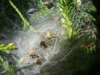 Keywords: agelenidae spider south west of france canvas shaped tunnel prey remains prey carcasses coniferous tree spider web aranéomorphes family of spiders agélènes tégénaires fear of spiders arachnophobia scary