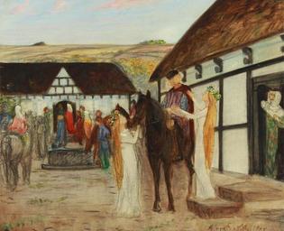 | Keywords: Agnes Slott-Møller - Ebbe Skammelsen i bryllupsgÃ¥rden (sketch).jpg Artwork Creator Agnes Slott-Møller Ebbe Skammelsen i bryllupsgÃ¥rden langSwitch The scene shows Ebbe arriving home on the evening of the wedding in his father's farm Ebbe being greeted by his sisters Scenen her viser Ebbe der af familien er løjet død just hjemkommen til den fædrene gÃ¥rd pÃ¥ dagen hvor hans bror skal giftes med Ebbes kæreste 1908 oil canvas cm 46 5 55 5 accession number object history credit line exhibition history Agnes Slott-Møller ~ lr signature http //heimskringla no/wiki/Ebbe_Skammels C3 B8n Dansk folkedigtning žEbbe Skammelsøn http //www bruun-rasmussen dk/sold-items do iid 300660996 lang en mode detail Bruun Rasmussen Ã…rhus 26 May 2014 lot 193 PD-old-auto-1923 1937 DEFAULTSORT Slott-Moller Agnes; Ebbe Skammelsen 1908; Bruun Rasmussen 2014 Agnes Slott-Møller |