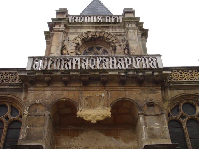 | Keywords: Agnus dei ND.JPG  fr Cathédrale Notre-Dame du Havre Ballustrades au-dessus du portail nord portail gauche en regardant dans la direction du choeur qui forment les mots Agnus Dei AVE MARIA GRATIA PLENA Own Jérémy76 05/06/2009 ImageNote 1 1081 453 1053 461 3264 2448 2 Rose de style flamboyant formant une roue portée par deux anges bas-relief sur les côtés ImageNoteEnd 1 ImageNote 2 253 1424 2660 991 3264 2448 2 Niches avec un couronnement de style médiéval Sur la plaque au centre il y avait un bas-relief représentant l'Annonciation Les niches étaient décorées de statues de prophètes de l'ancien testament ImageNoteEnd 2 ImageNote 3 404 902 2293 261 3264 2448 2 Balustrade gothique; on lit Ave Maria gratia plena ImageNoteEnd 3 ImageNote 4 1146 245 857 114 3264 2448 2 Balustrade Agnus Dei Par le passé la balustrade écrivait Quis ut Deus et a était remanier plusieurs fois ImageNoteEnd 4 ImageNote 5 1151 8 808 233 3264 2448 2 Le triangle de la toitures était auparavant décoré par un bas-relief en triangle représentant le Père appuyé sur deux chérubins ImageNoteEnd 5 ImageNote 6 743 114 339 787 3264 2448 2 Pilastre d'ordre dorique idem pour l'autre pilastre ImageNoteEnd 6 ImageNote 7 294 1171 2501 184 3264 2448 2 Corniche de style classique ImageNoteEnd 7 ImageNote 8 2823 1081 437 306 3264 2448 2 Balustrade gothique ImageNoteEnd 8 Cathédrale Notre-Dame du Havre |