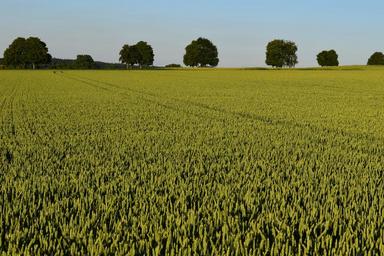 Keywords: agriculture cornfield summer horizon trees green immature