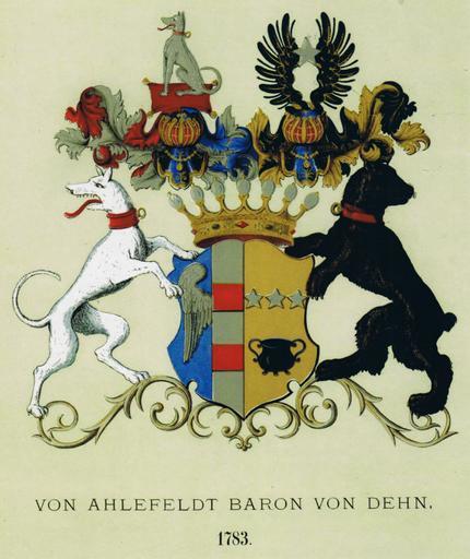 Keywords: Ahlefeldt Baron von Dehn Wappen 1783 01.jpg de Wappen Ahlefeldt Baron von Dehn aus dem Jahr 1783 Scan aus dem Buch Die Schleswig-Holsteinische Ritterschaft aus dem Jahr 1869 L von Ahlefeldt und W A von Rumohr 1869 PD-old Coats of arms of Ahlefeldt-Dehn family |