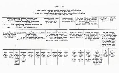 | Keywords: Ahlefeldt Stammtafel 11.jpg de Stammtalfel der Adelsfamilie von Ahlefeldt aus dem Jahr 1869 Scan aus dem Buch Die Schleswig-Holsteinische Ritterschaft aus dem Jahr 1869 L von Ahlefeldt und W A von Rumohr 1869 PD-old Family trees of Ahlefeldt family |