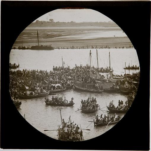 | Keywords: india holy religious boats mela river ahmedabad vintage antique black and white blackandwhite b&w bw public domain publicdomain round circle black and white Hand captioned "Ahemadabad [sic] Mela" and showing hundreds of people at the water's edge and in boats. This is one of a selection of lantern slides dating I estimate to c. 1900. The set appears to be a personal collection, with items connected to Northern Ireland, missionary work, the YMCA, and India. Hand captioned "Ahemadabad [sic] Mela" and showing hundreds of people at the water's edge and in boats. This is one of a selection of lantern slides dating I estimate to c. 1900. The set appears to be a personal collection, with items connected to Northern Ireland, missionary work, the YMCA, and India. |