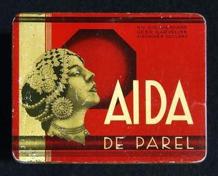 Keywords: Aida De Parel sigaren blik, foto1.JPG Very old packaging of a Dutch product that is not produced and/or not sold any more own 2014-03-16 13 17 39 Alf van Beem CC-Zero Trademarked Aida cigars Cigar tins