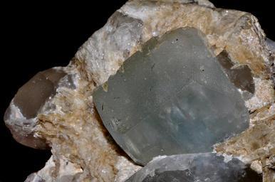 Keywords: Aigue-marine sur quartz fumé 1(Pakistan).jpg Cristal de béryl var aigue-marine sur gangue de quartz fumé Own 2008-12-23 Parent Géry Aquamarine on smoky quartz Taken with Nikon D90