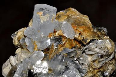 | Keywords: Aigue-marine, tourmaline, mica (Pakistan).jpg fr Cristaux de béryl var aigue-marine cristaux de tourmaline noire schorl et cristaux de mica muscovite own Parent Géry 26/04/10 Taken with Nikon D90 Aquamarine and muscovite Aquamarine with schorl |