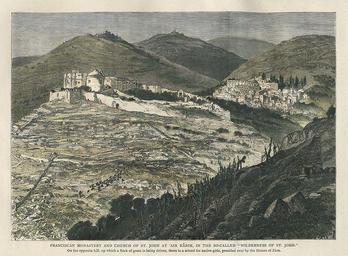 | Keywords: Ain Karim00.jpg en 'Ain Karim Franciscan Monastery Church of St John 1875 Franciscan Monastery and Church of St John at 'Ain Karim in the so-called 'Wilderness of St John' full page wood engraved antique print published in Picturesque Palestine about 1875 Recent hand colouring and text on the reverse Size 23 5 x 17 5 cms http //www antiqueprints com/search php nobox scat stext stype sprice pg 495 Stanley Lane-Poole 1875 Historical images of Ein Karem PD-old-100 | ||||